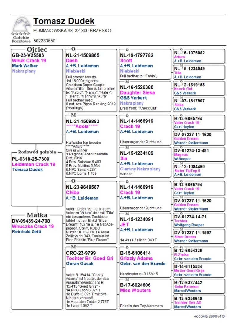 Mamy Państwu do zaoferowania gołębia 7309, Inbred Leideman Crack 19. Możliwość wykonania badań DNA na koszt kupującego. Więcej informacji pod numerem 502 283 650.