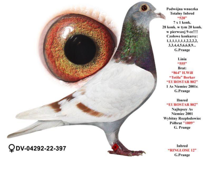 Mamy Państwu do zaoferowania gołębia 7124, Bardzo mocny Inbred Der 520. Możliwość wykonania badań DNA na koszt kupującego. Więcej informacji pod numerem 502 283 650.