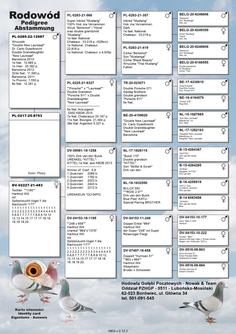Oryginalny gołąb z hodowli Nowak & Team, szczegóły pochodzenia, rodowód poniżej.
