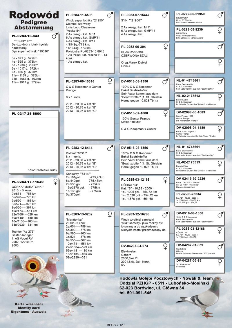 Oryginalny gołąb z hodowli Nowak & Team, szczegóły pochodzenia, rodowód poniżej.