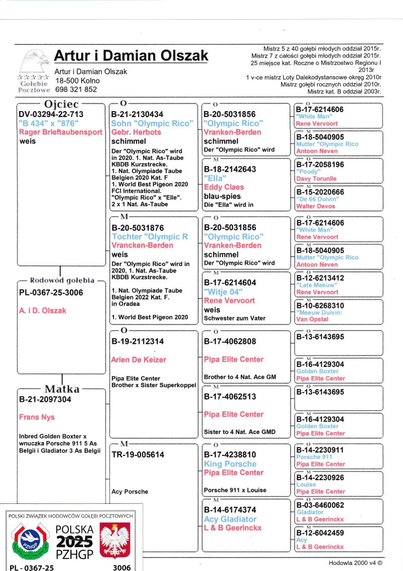 PL-0367-25-3006 Podwójny wnuk Olympic Rico x Porsche 911