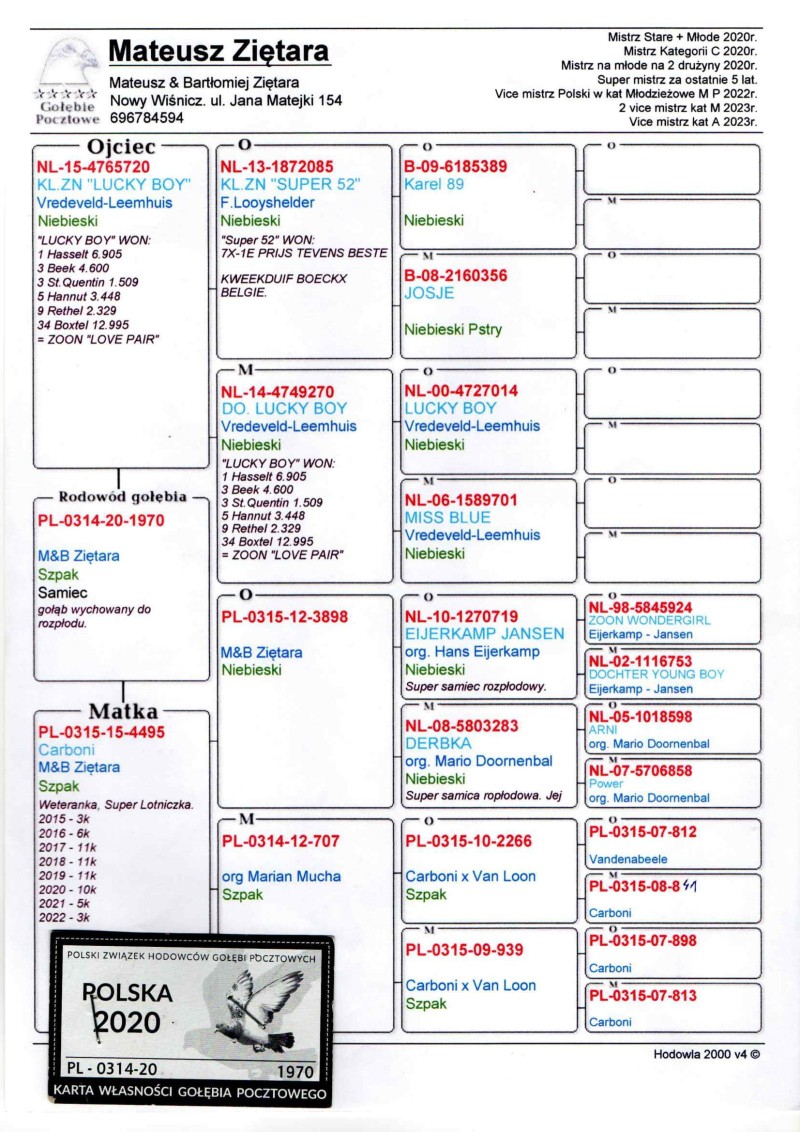 Oryginalny gołąb z hodowli Mateusza Ziętary. Szczegóły pochodzenia w rodowodzie. Więcej informacji pod nr tel.: 607063552