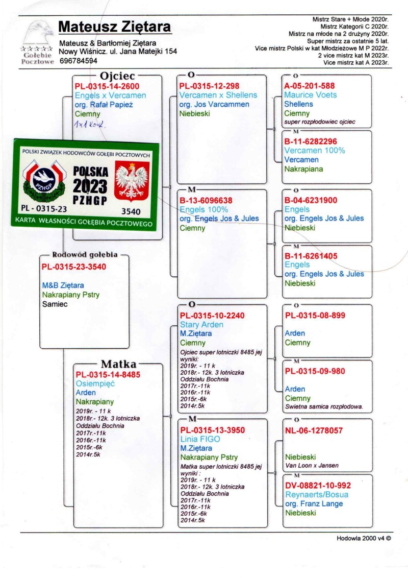 Oryginalny gołąb z hodowli Mateusza Ziętary. Szczegóły pochodzenia w rodowodzie. Więcej informacji pod nr tel.: 607063552