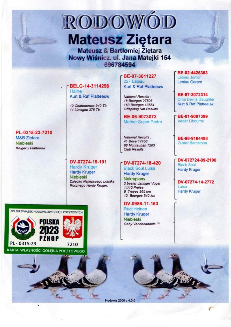 Oryginalny gołąb z hodowli Mateusza Ziętary. Szczegóły pochodzenia w rodowodzie. Więcej informacji pod nr tel.: 607063552 **przed zalicytowaniem proszę o kontakt z właścicielem w sprawie płci oferowanego gołębia