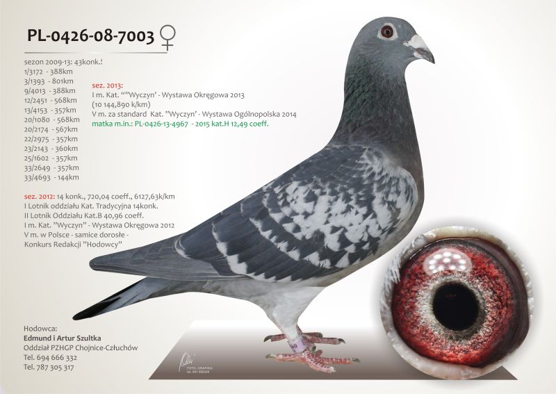 Oryginalny gołąb z hodowli E.A Szultka. Szczegóły pochodzenia w rodowodzie. Więcej informacji pod nr tel.: 787 305 317