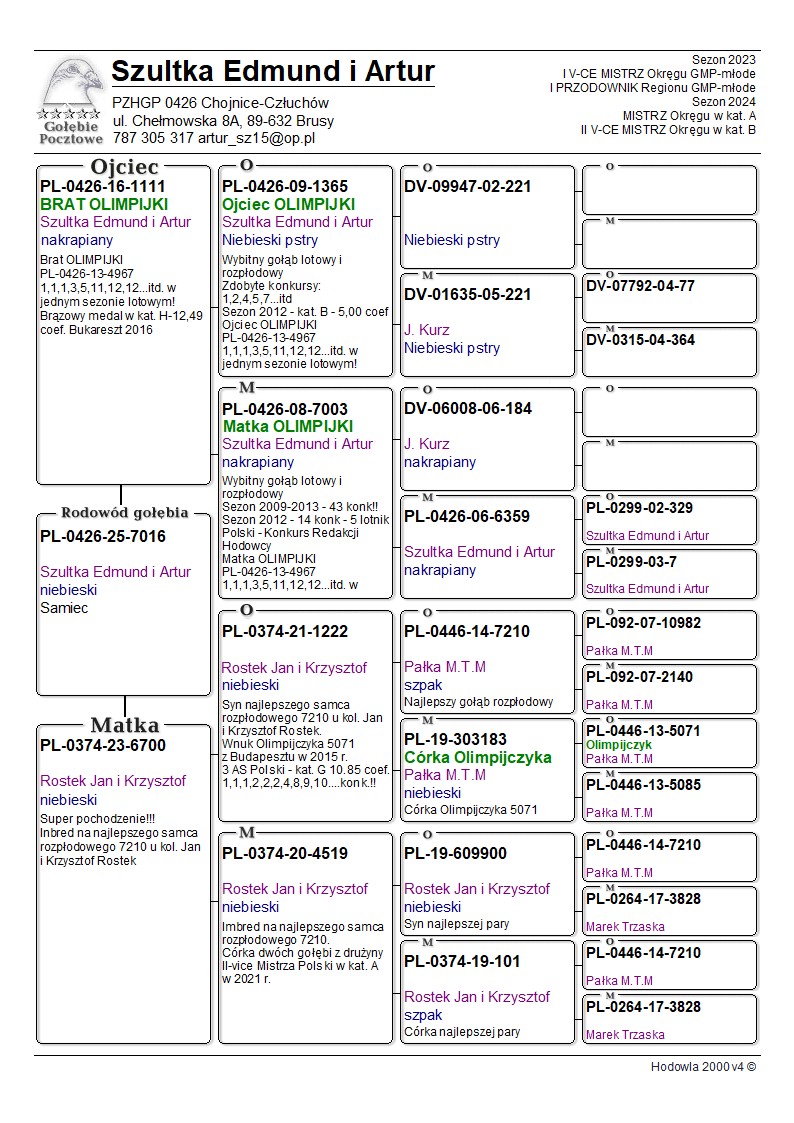 Oryginalny gołąb z hodowli E.A Szultka. Szczegóły pochodzenia w rodowodzie. Więcej informacji pod nr tel.: 787 305 317