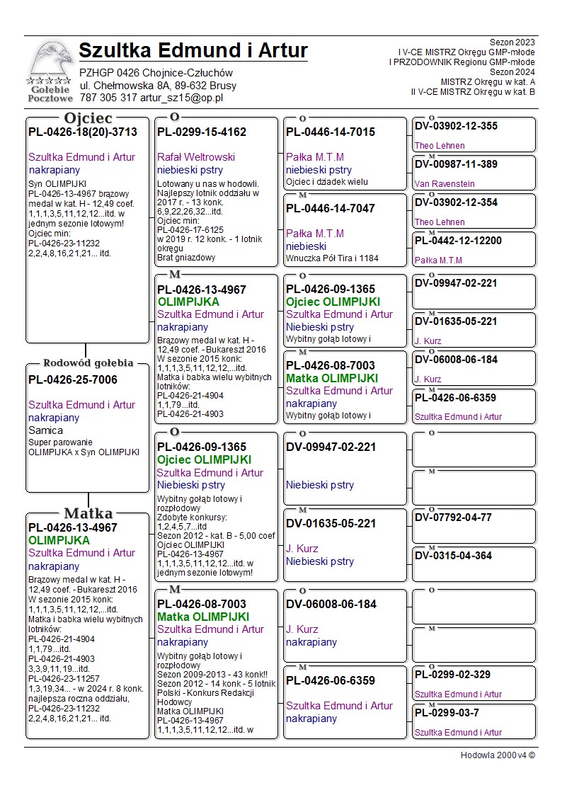 Oryginalny gołąb z hodowli E.A Szultka. Szczegóły pochodzenia w rodowodzie. Więcej informacji pod nr tel.: 787 305 317