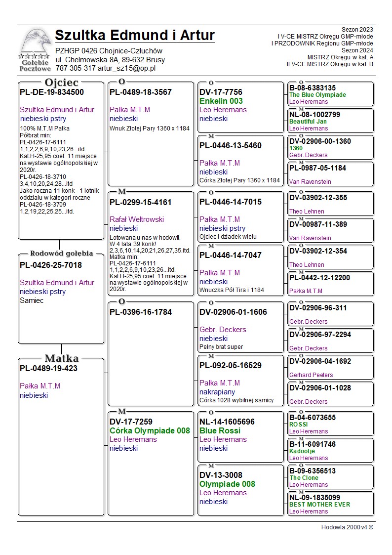 Oryginalny gołąb z hodowli E.A Szultka. Szczegóły pochodzenia w rodowodzie. Więcej informacji pod nr tel.: 787 305 317