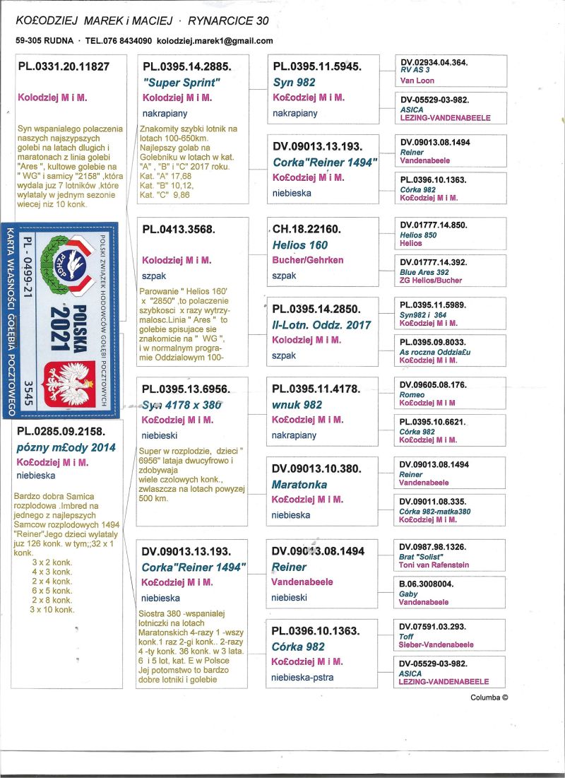 Oryginalny gołąb z hodowli Kołodziej M i M. Wiecej informacji w rodowodzie oraz pod numerem telefonu.