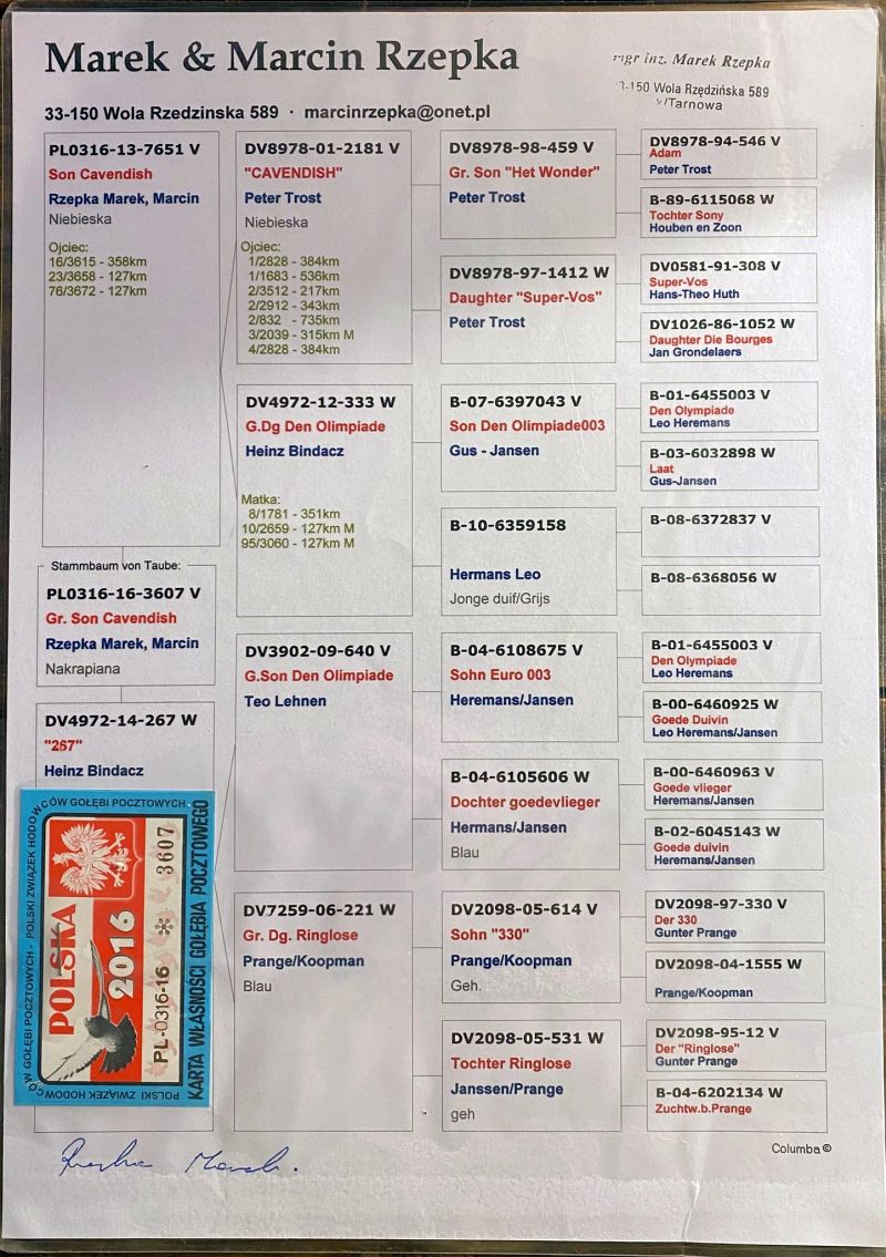 **LIKWIDACJA HODOWLI*** Oryginalny gołąb z hodowli M. i M. Rzepka. Szczegóły pochodzenia w rodowodzie. Więcej informacji pod nr tel.: 577 608 267