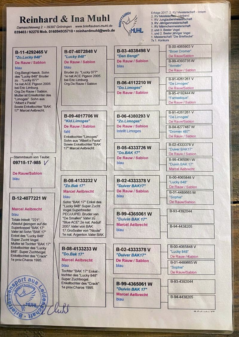 **LIKWIDACJA HODOWLI*** Oryginalny gołąb z hodowli Reinhard & Ina Muhl. Szczegóły pochodzenia w rodowodzie. Więcej informacji pod nr tel.: 577 608 267