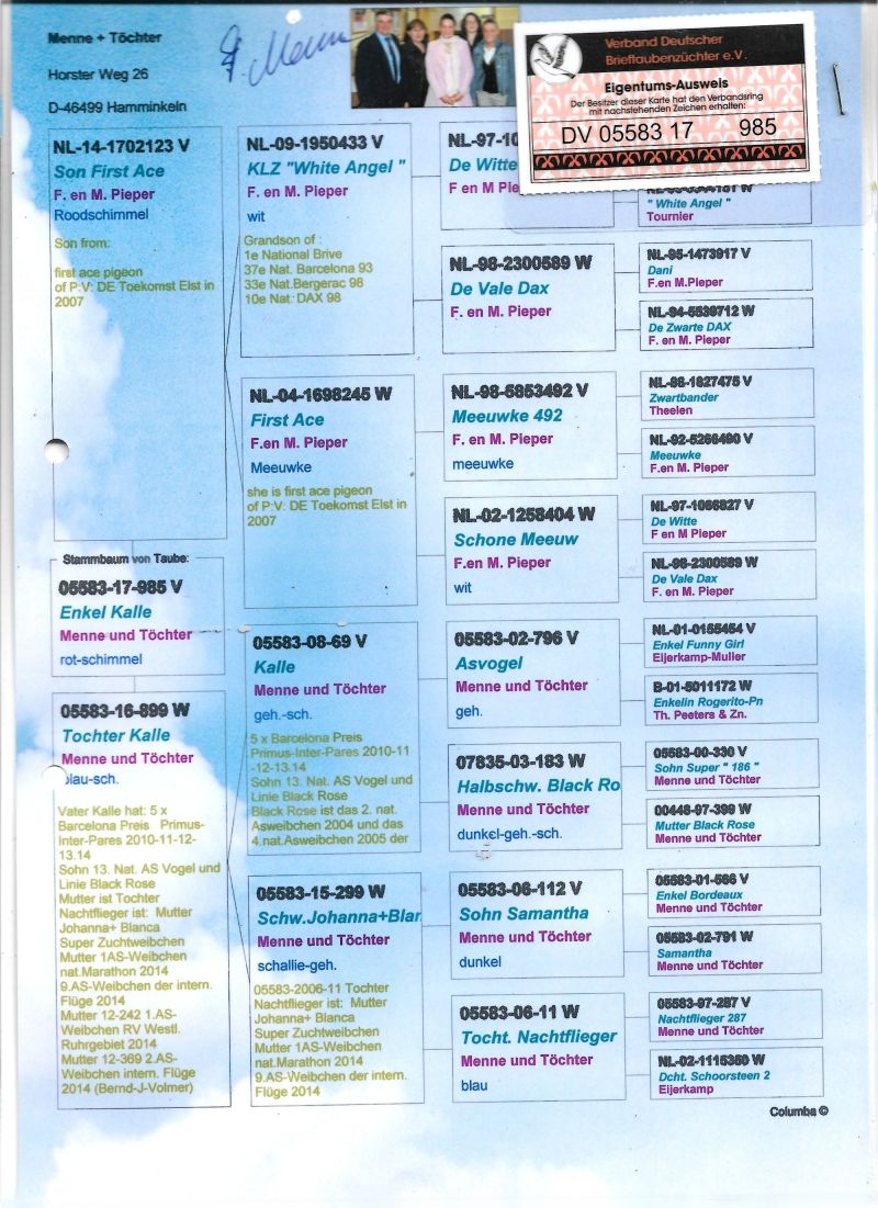 Oryginalny gołąb z hodowli Menne und Tochter.