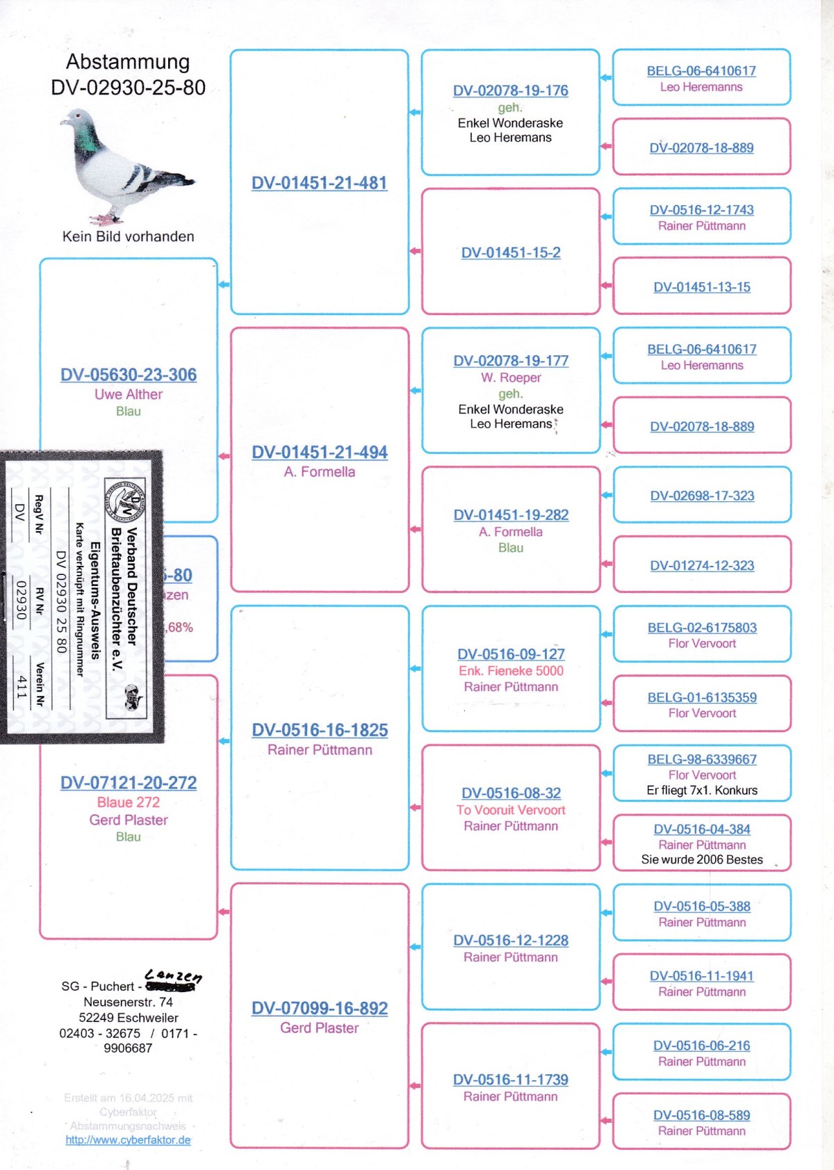 OLR German Classic 2025 Gołąb brał udział w lotach na OLR German Classic. Wyniki lotowe dostępne na stronie internetowej. Szczegóły pochodzenia w rodowodzie. Gołąb znajduje się w Polsce, można go obejrzeć w miejscowości Zblewo (woj. pomorskie), po wcześniejszym kontakcie telefonicznym. Więcej informacji o gołębiu i transporcie pod nr tel.: 511 607 710.