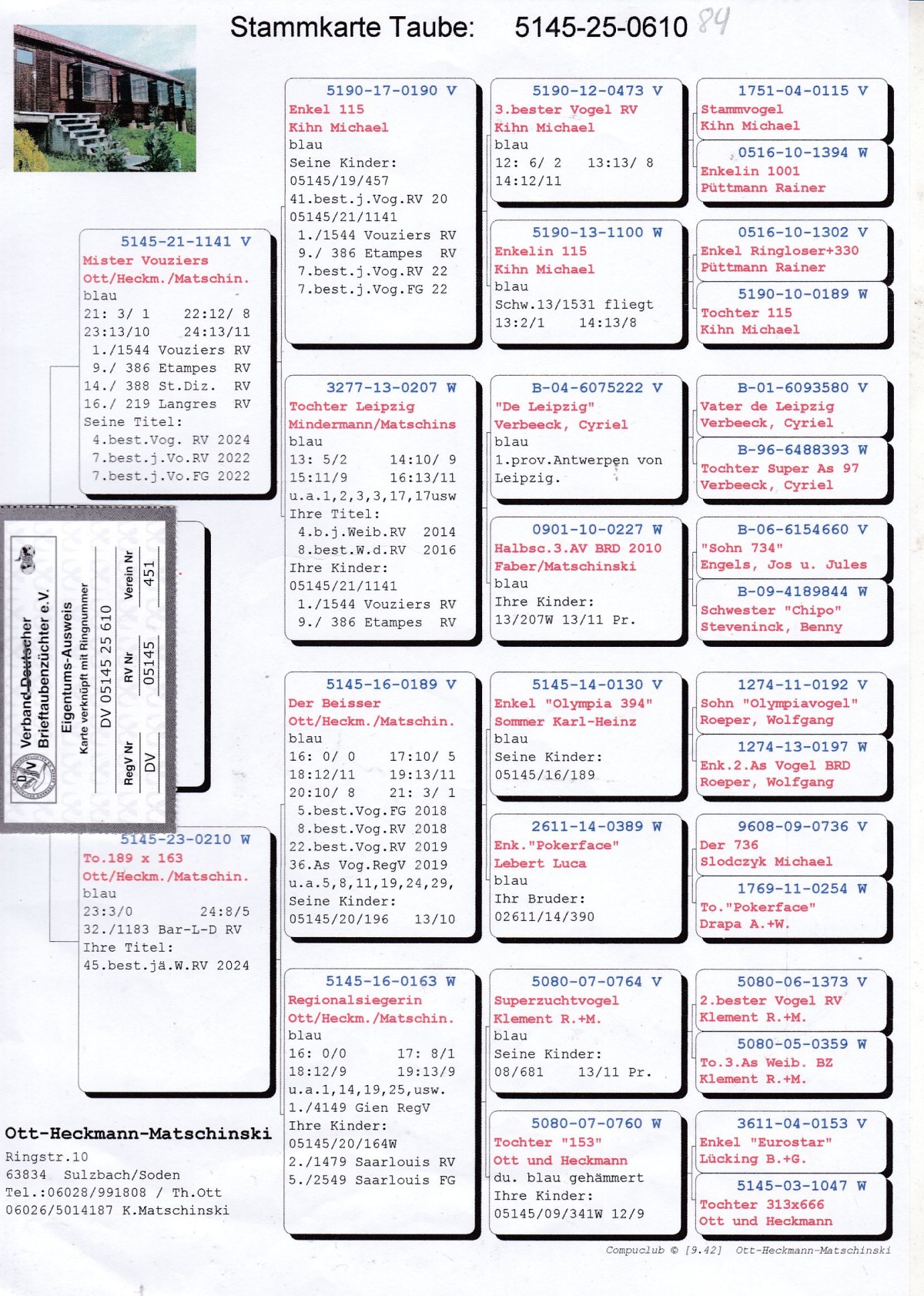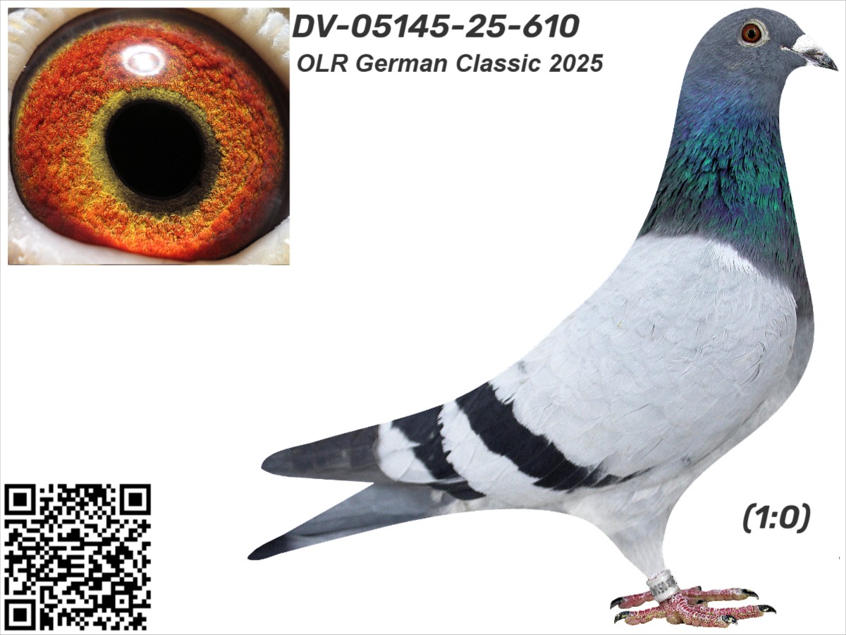 OLR German Classic 2025 Gołąb brał udział w lotach na OLR German Classic. Wyniki lotowe dostępne na stronie internetowej. Szczegóły pochodzenia w rodowodzie. Gołąb znajduje się w Polsce, można go obejrzeć w miejscowości Zblewo (woj. pomorskie), po wcześniejszym kontakcie telefonicznym. Więcej informacji o gołębiu i transporcie pod nr tel.: 511 607 710.