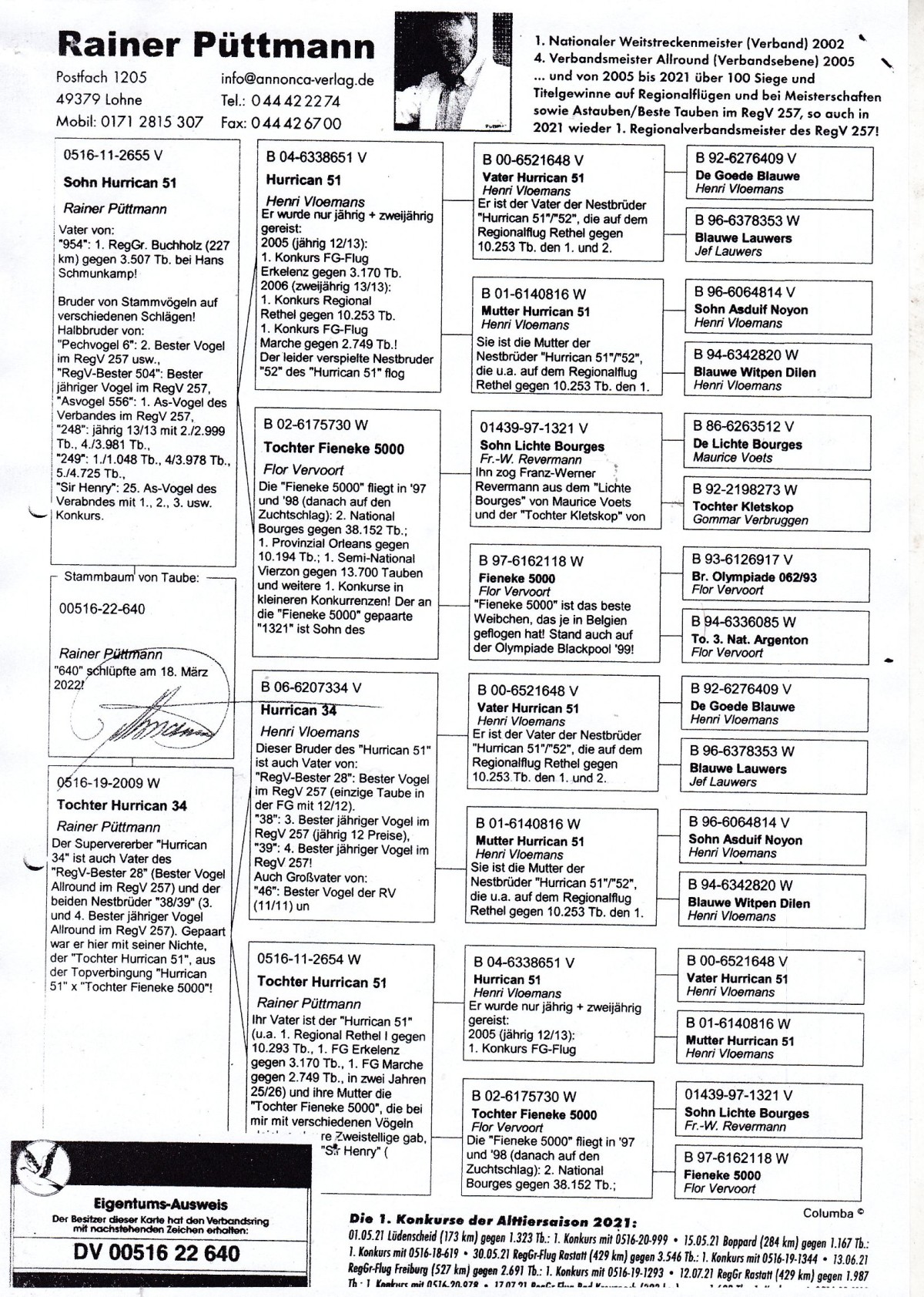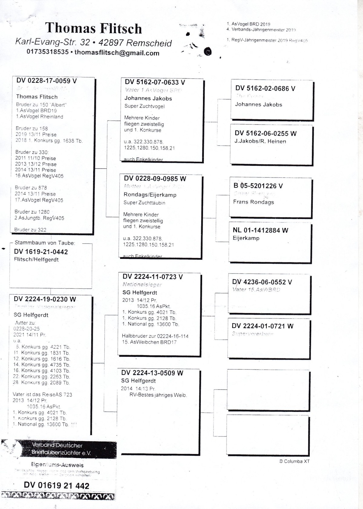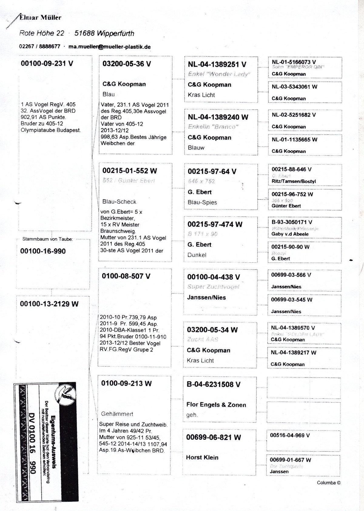 OLR German Classic 2025 Gołąb brał udział w lotach na OLR German Classic. Wyniki lotowe dostępne na stronie internetowej. Szczegóły pochodzenia w rodowodzie. Gołąb znajduje się w Polsce, można go obejrzeć w miejscowości Zblewo (woj. pomorskie), po wcześniejszym kontakcie telefonicznym. Więcej informacji o gołębiu i transporcie pod nr tel.: 511 607 710.