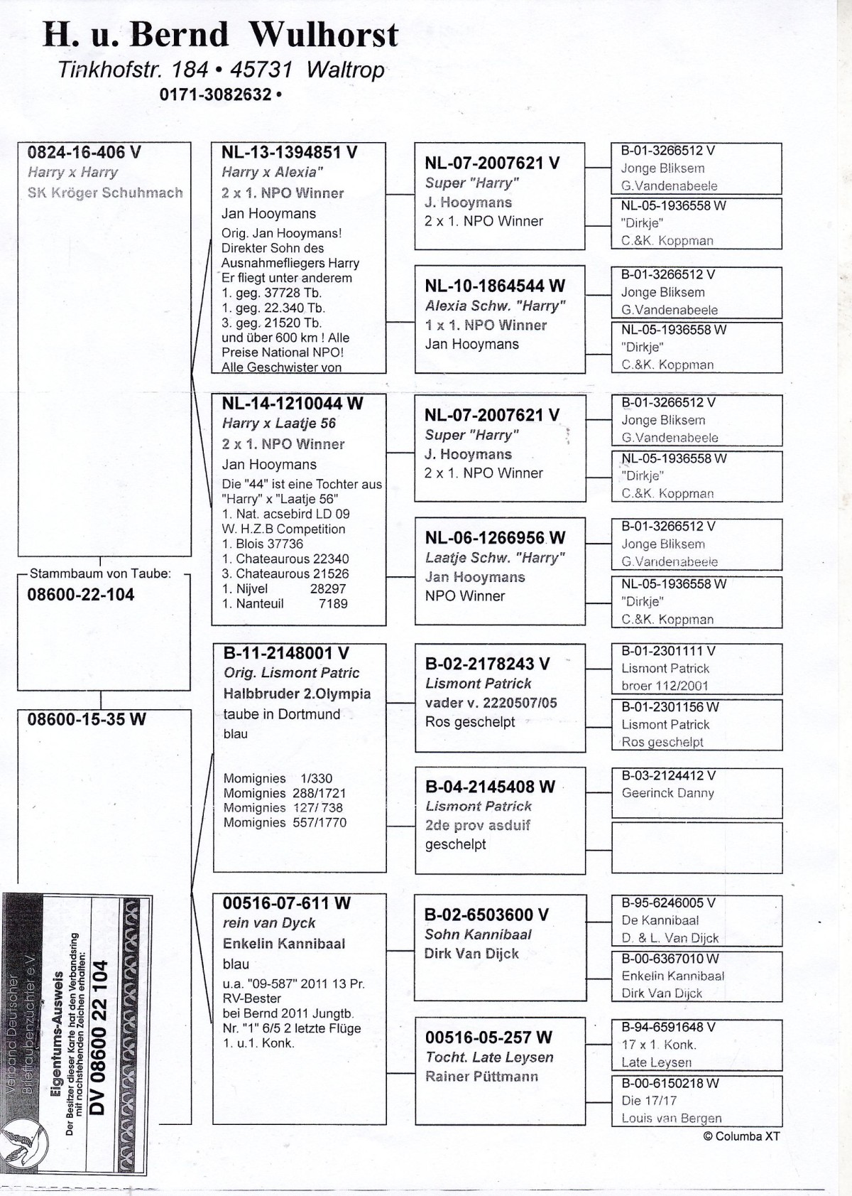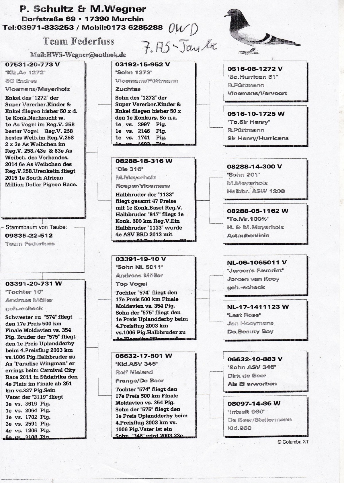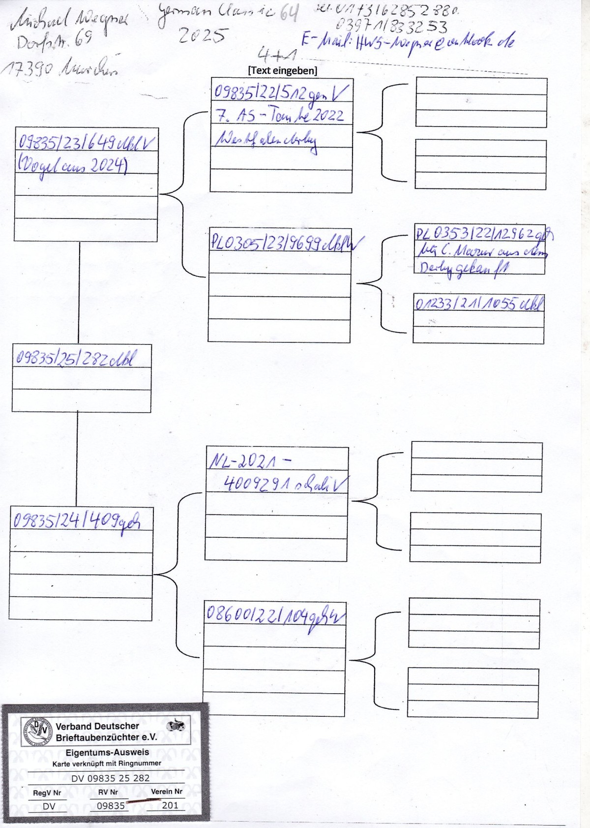 OLR German Classic 2025 Gołąb brał udział w lotach na OLR German Classic. Wyniki lotowe dostępne na stronie internetowej. Szczegóły pochodzenia w rodowodzie. Gołąb znajduje się w Polsce, można go obejrzeć w miejscowości Zblewo (woj. pomorskie), po wcześniejszym kontakcie telefonicznym. Więcej informacji o gołębiu i transporcie pod nr tel.: 511 607 710.