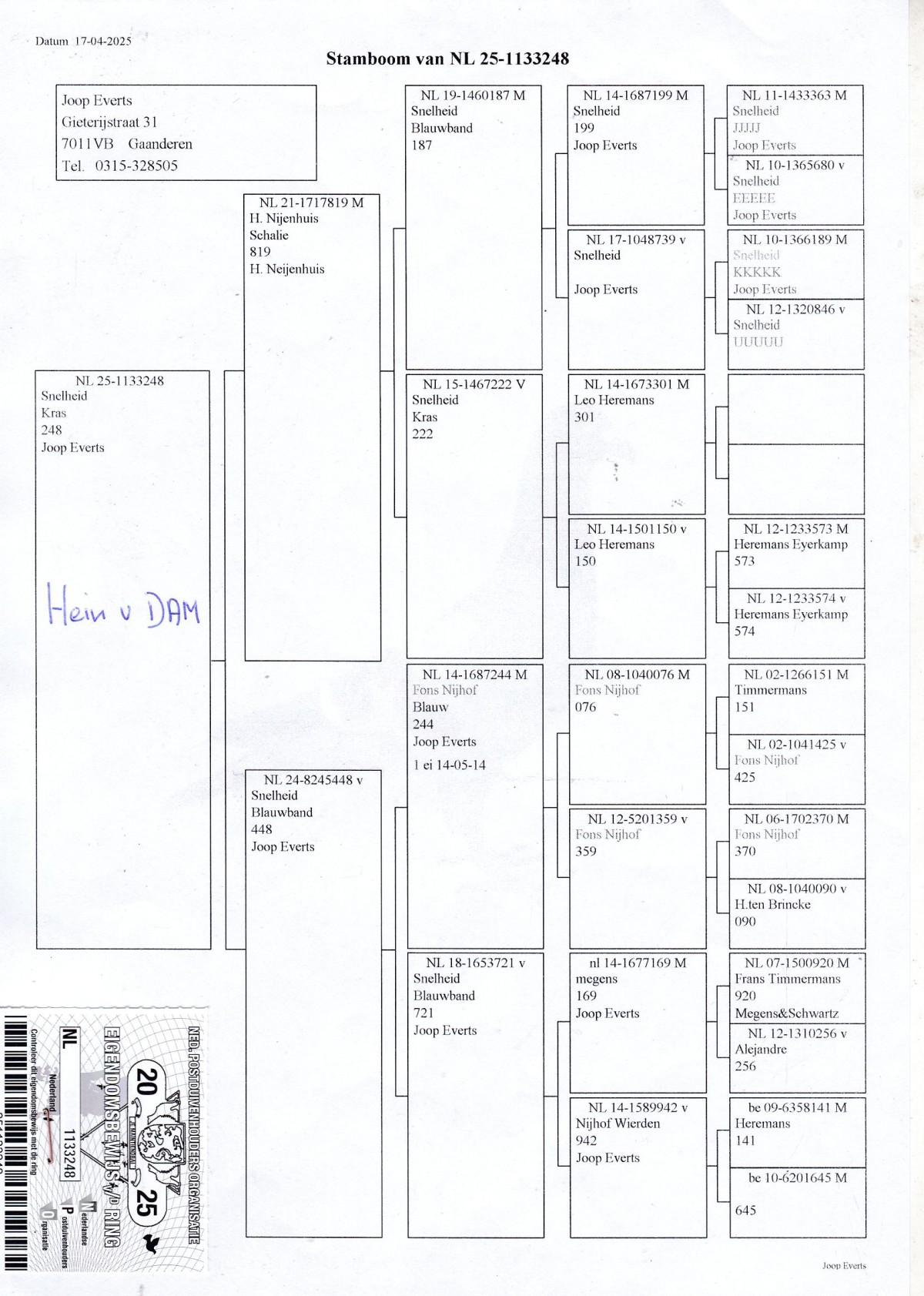 OLR German Classic 2025 Gołąb brał udział w lotach na OLR German Classic. Wyniki lotowe dostępne na stronie internetowej. Szczegóły pochodzenia w rodowodzie. Gołąb znajduje się w Polsce, można go obejrzeć w miejscowości Zblewo (woj. pomorskie), po wcześniejszym kontakcie telefonicznym. Więcej informacji o gołębiu i transporcie pod nr tel.: 511 607 710.