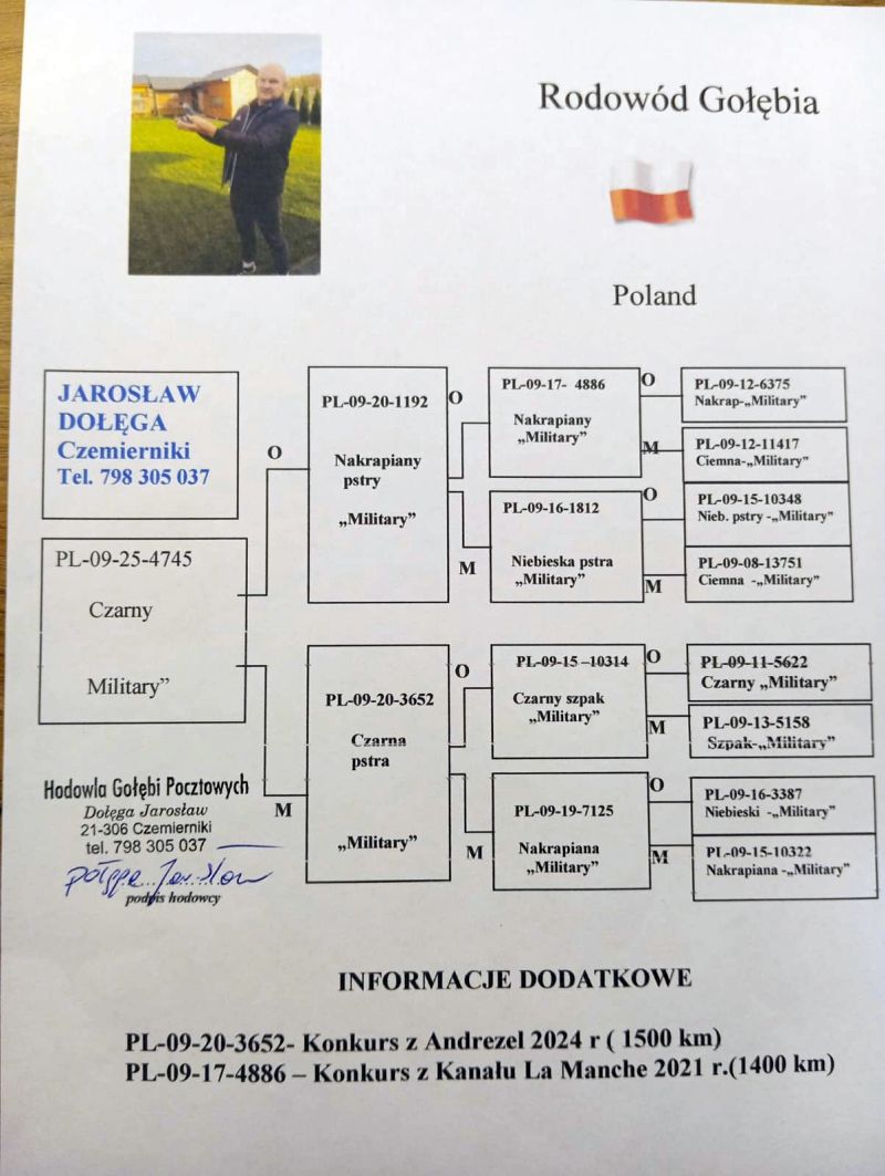 Oryginalny gołąb z hodowli Jarosława Dołęgi. Szczegóły pochodzenia w rodowodzie. Więcej informacji pod nr tel.: 798305037 *możliwość wysyłki na terenie Polski