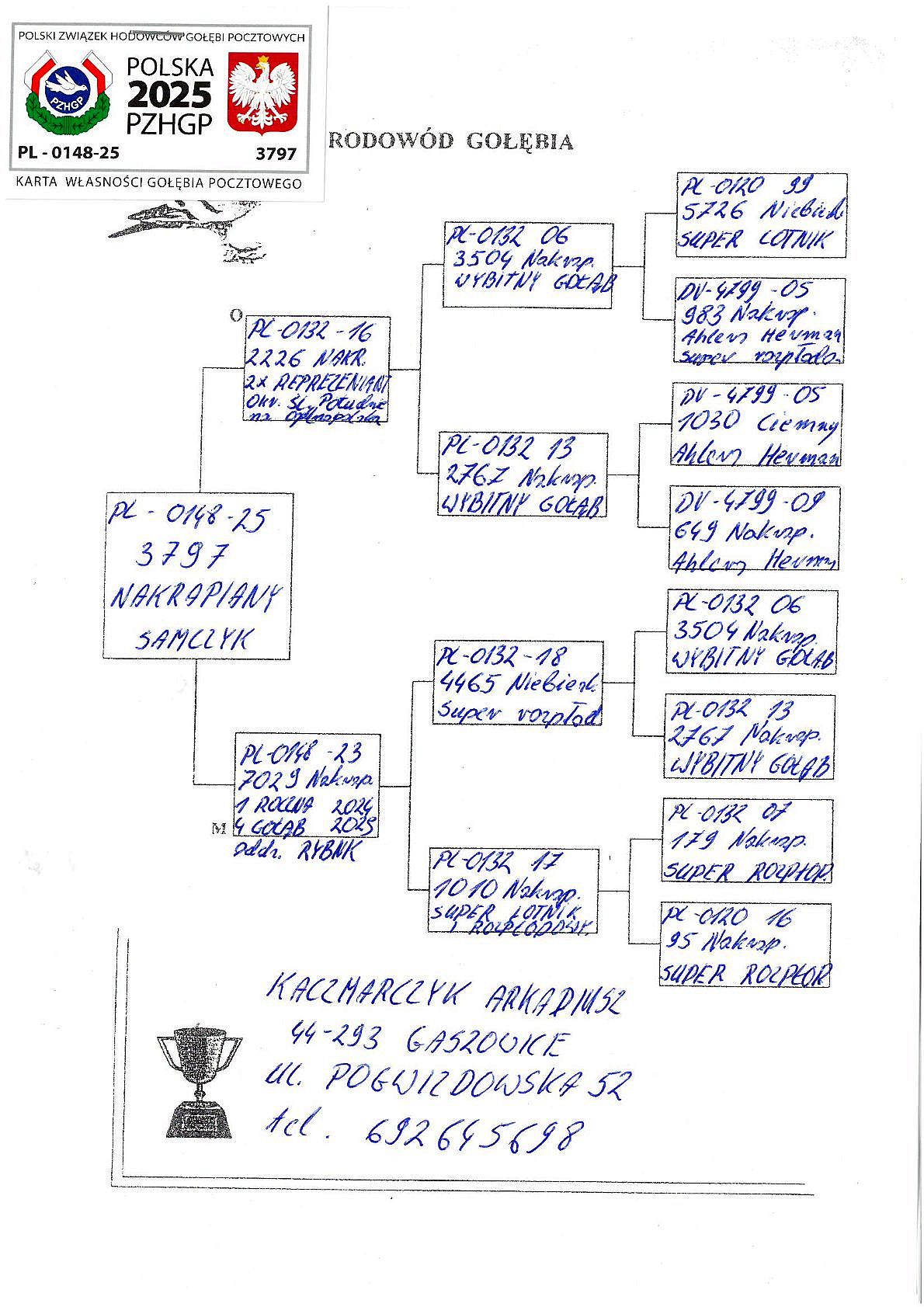 oryg. Kaczmarczyk Arkadiusz Aukcja charytatywna na rzecz Poli Bekier. Całkowity dochód ze sprzedaży gołębi zostanie przekazany na rzecz fundacji Poli Bekier na jej leczenie. Więcej informacji o oferowanym gołębiu u jego hodowcy (telefon na rodowodzie). Wszelkie inne informacje o płatności i transporcie gołębi pod nr telefonu 605 165 333 (Dariusz Czaiński).