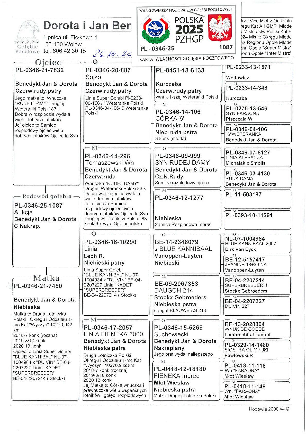 oryg. Benedykt Dorota & Jan Aukcja charytatywna na rzecz Poli Bekier. Całkowity dochód ze sprzedaży gołębi zostanie przekazany na rzecz fundacji Poli Bekier na jej leczenie. Więcej informacji o oferowanym gołębiu u jego hodowcy (telefon na rodowodzie). Wszelkie inne informacje o płatności i transporcie gołębi pod nr telefonu 605 165 333 (Dariusz Czaiński).
