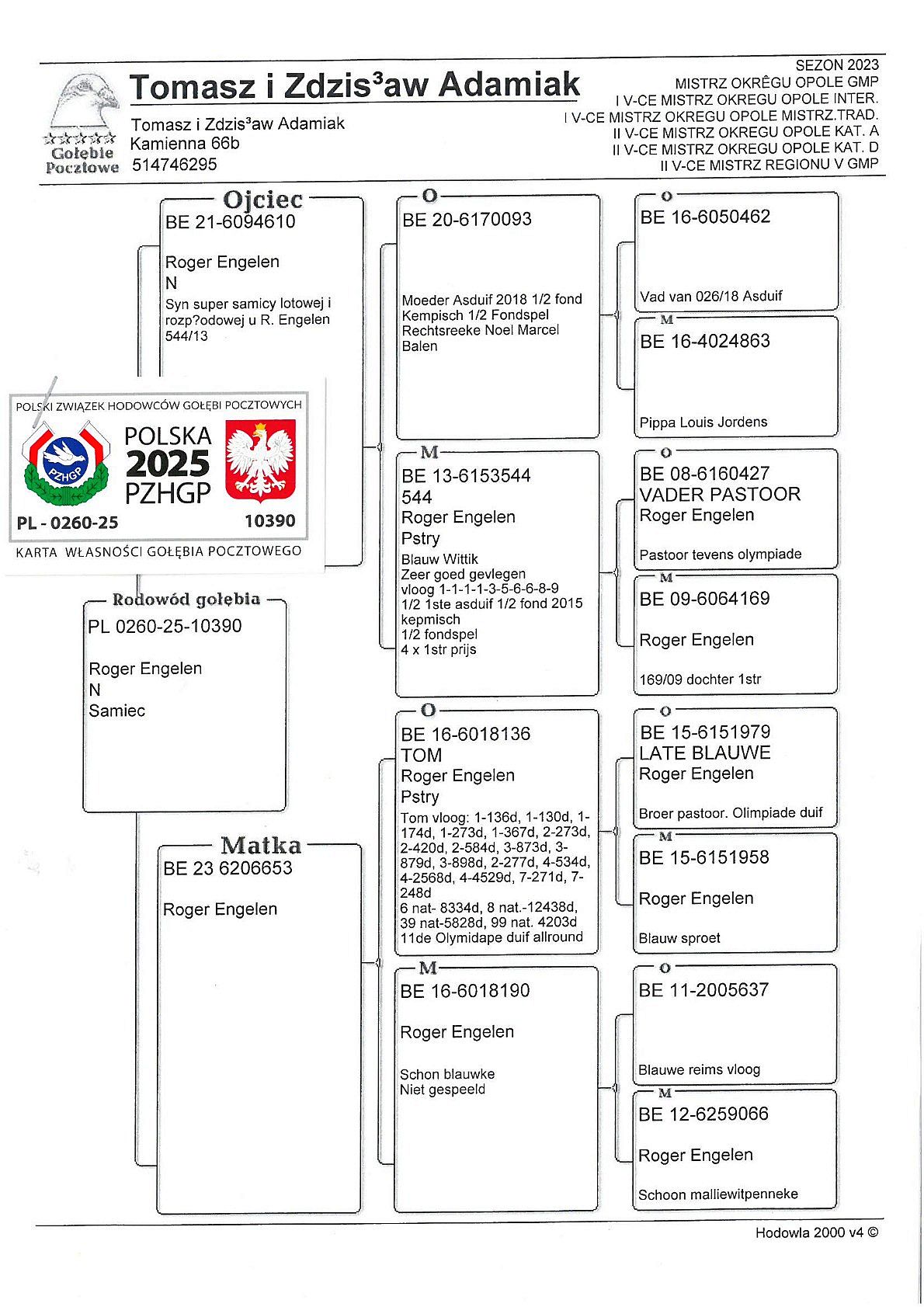 oryg. Adamiak Tomasz i Zdzisław Aukcja charytatywna na rzecz Poli Bekier. Całkowity dochód ze sprzedaży gołębi zostanie przekazany na rzecz fundacji Poli Bekier na jej leczenie. Więcej informacji o oferowanym gołębiu u jego hodowcy (telefon na rodowodzie). Wszelkie inne informacje o płatności i transporcie gołębi pod nr telefonu 605 165 333 (Dariusz Czaiński).