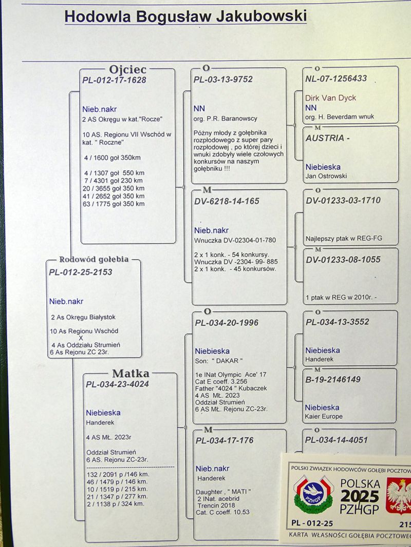 Płeć: młody gołąb Hodowca - rasa: Bogusław Jakubowski Zakończenie: 5.12.2025 godz. 18:58
