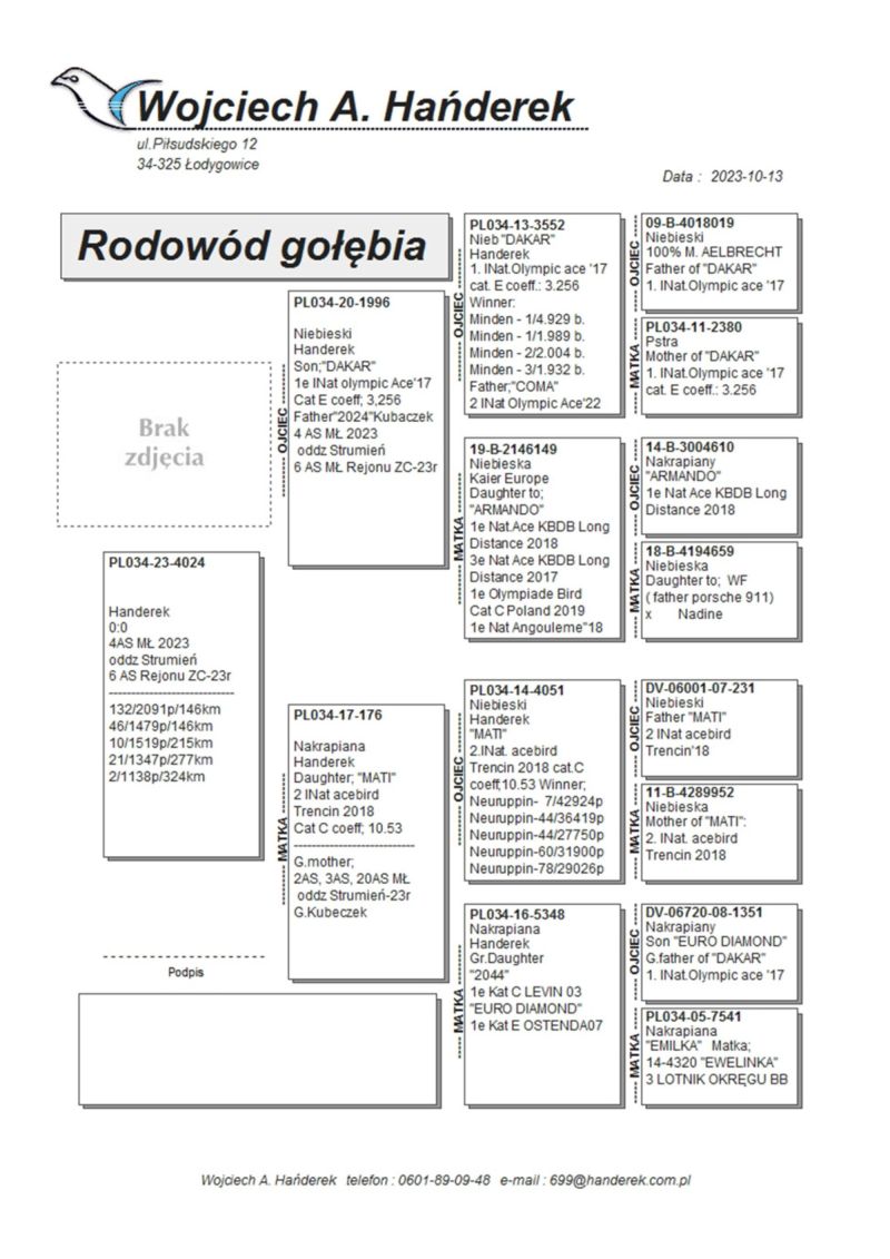 Ojciec młodego to 2-As Okręgu i 10-As Regionu VII Wschód w kat. "R" Matka młodego to 4-As Oddziału Strumień i 6-As Rejonu ZC 23r. Szczegóły w zamieszczonym rodowodzie.