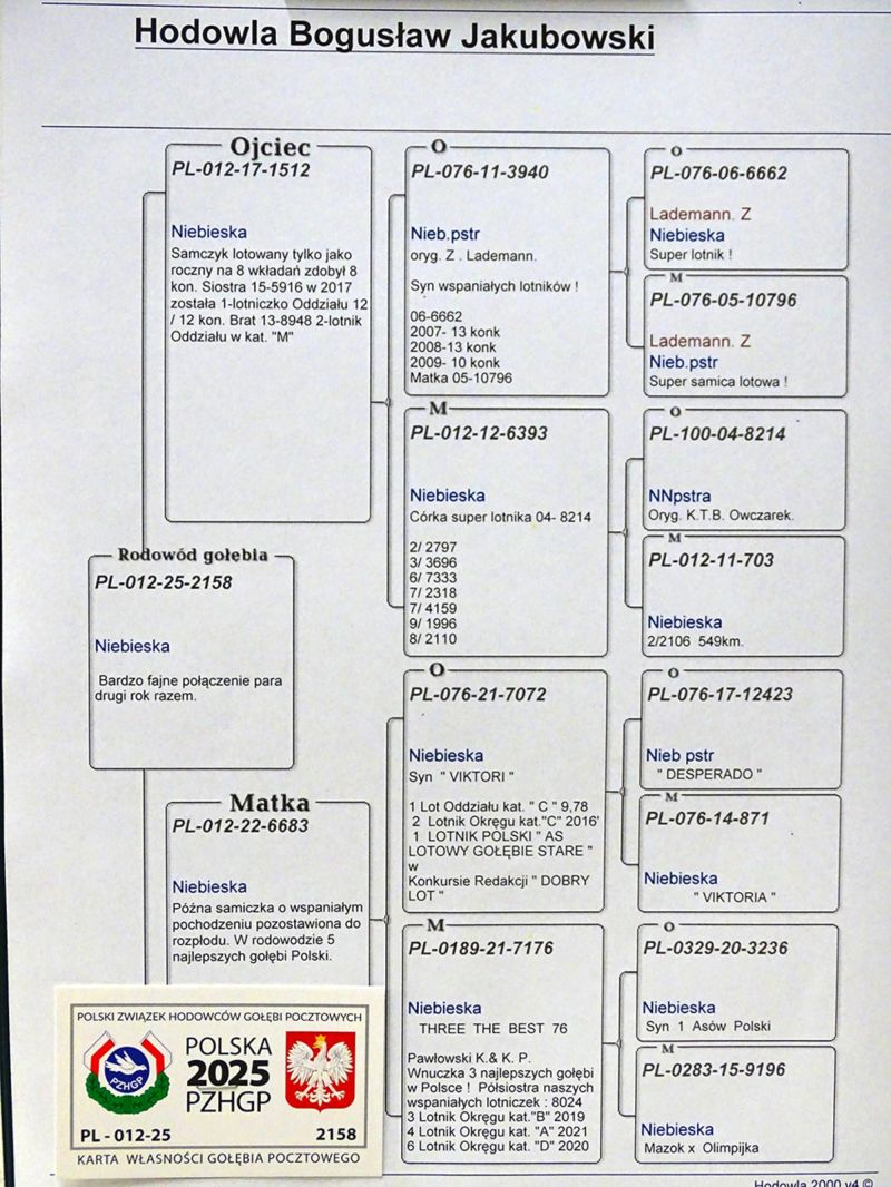 Ojciec młodego to brat super lotników , matka to samiczka o fantastycznym pochodzeniu w rodowodzie pięć najlepszych gołębi w Polsce.Szczegóły w zamieszczonym rodowodzie.