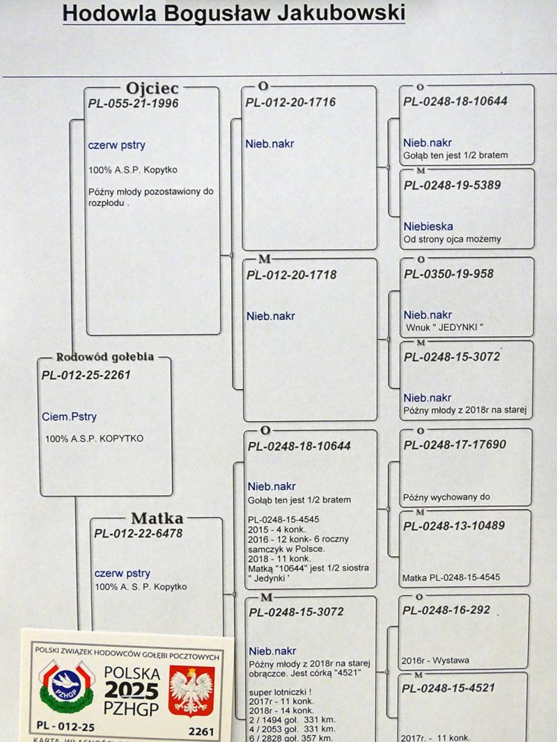 Młody wychowany w bliskim pokrewieństwie wnuk x córka "644". Szczegóły w zamieszczonym rodowodzie.