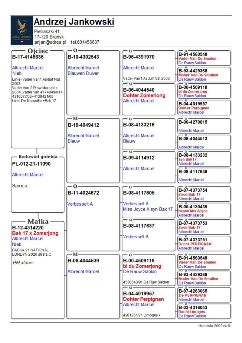 Na aukcji samica z oryginalnych gołębie Marcela Aelbrechta (De Rauw & Sablon), na koszt kupującego istnieje możliwość potwierdzenia pochodzenia, ponieważ rodzice są wpisane do bazy genowej w firmie COBA. Preferowany odbiór osobisty woj. podlaskie, w przypadku wysyłki kurierem odpłatność ok 150 zł. Możliwy odbiór na wystawie Krajowej.