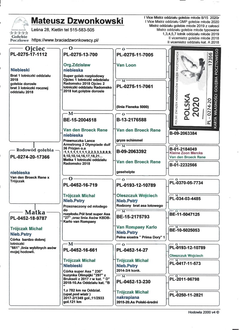 Oryginalny gołąb z hodowli Mateusza Dzwonkowskiego. Szczegóły pochodzenia w rodowodzie. Więcej informacji pod nr tel.: 693 857 448 *koszt wysyłki pokrywa kupujacy około 150zł