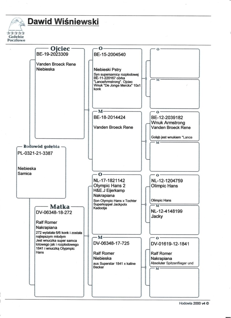 Oryginalny gołąb z hodowli Dawida Wiśniewskiego. Szczegóły pochodzenia w rodowodzie. Więcej informacji pod nr tel.: 693 857 448 *koszt wysyłki pokrywa kupujacy około 150zł