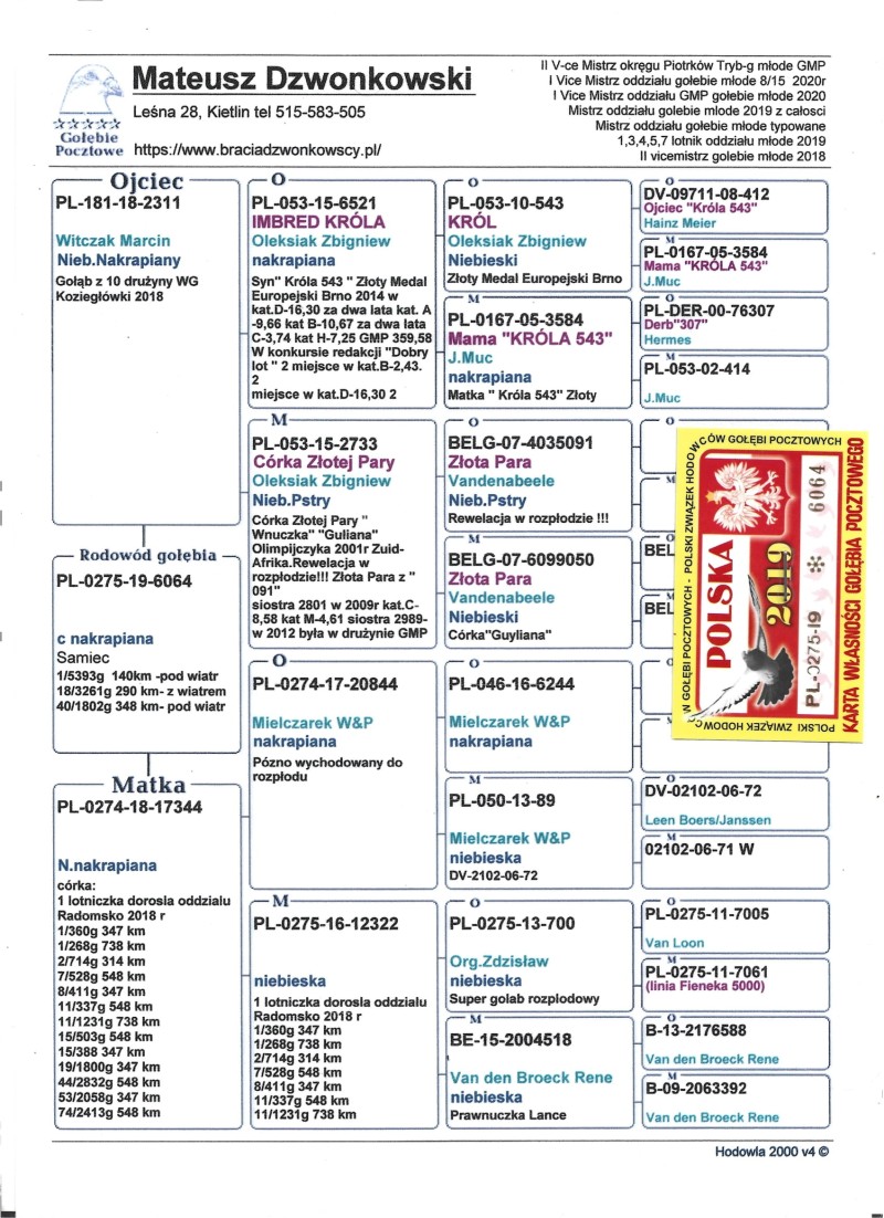 Oryginalny gołąb z hodowli Mateusza Dzwonkowskiego. Szczegóły pochodzenia w rodowodzie. Więcej informacji pod nr tel.: 693 857 448 *koszt wysyłki pokrywa kupujacy około 150zł