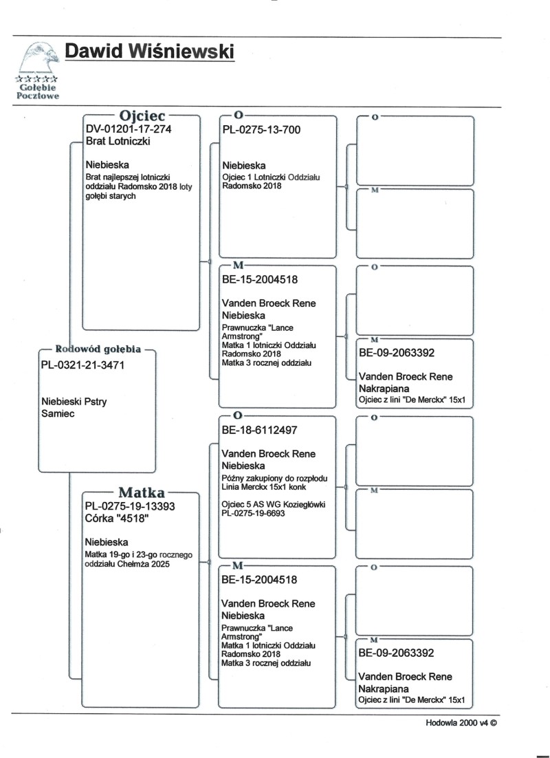 Oryginalny gołąb z hodowli Dawida Wiśniewskiego. Szczegóły pochodzenia w rodowodzie. Więcej informacji pod nr tel.: 693 857 448 *koszt wysyłki pokrywa kupujacy około 150zł