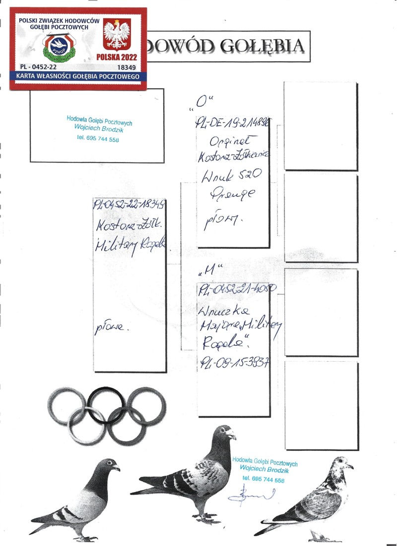 Oryginalny gołąb z hodowli Wojciecha Brodzika. Szczegóły pochodzenia w rodowodzie. Więcej informacji pod nr tel.: 693 857 448 *koszt wysyłki pokrywa kupujacy około 150zł