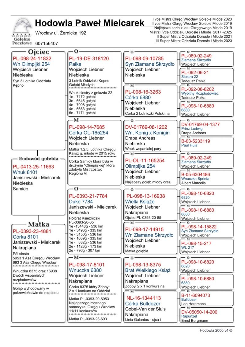 Szczegóły proponowanych gołębi znajdziecie w rodowodzie oraz pod numerem 607156407 o telefony proszę po godzinie 16ej.