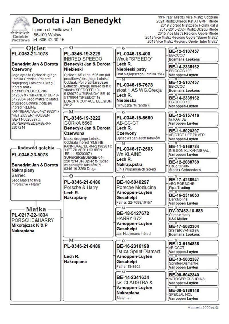 PL-0346-23-5078 oryg. Benedykt Jan i Dorota 2024r. Mistrz Okręgu kat A i GMP Młode