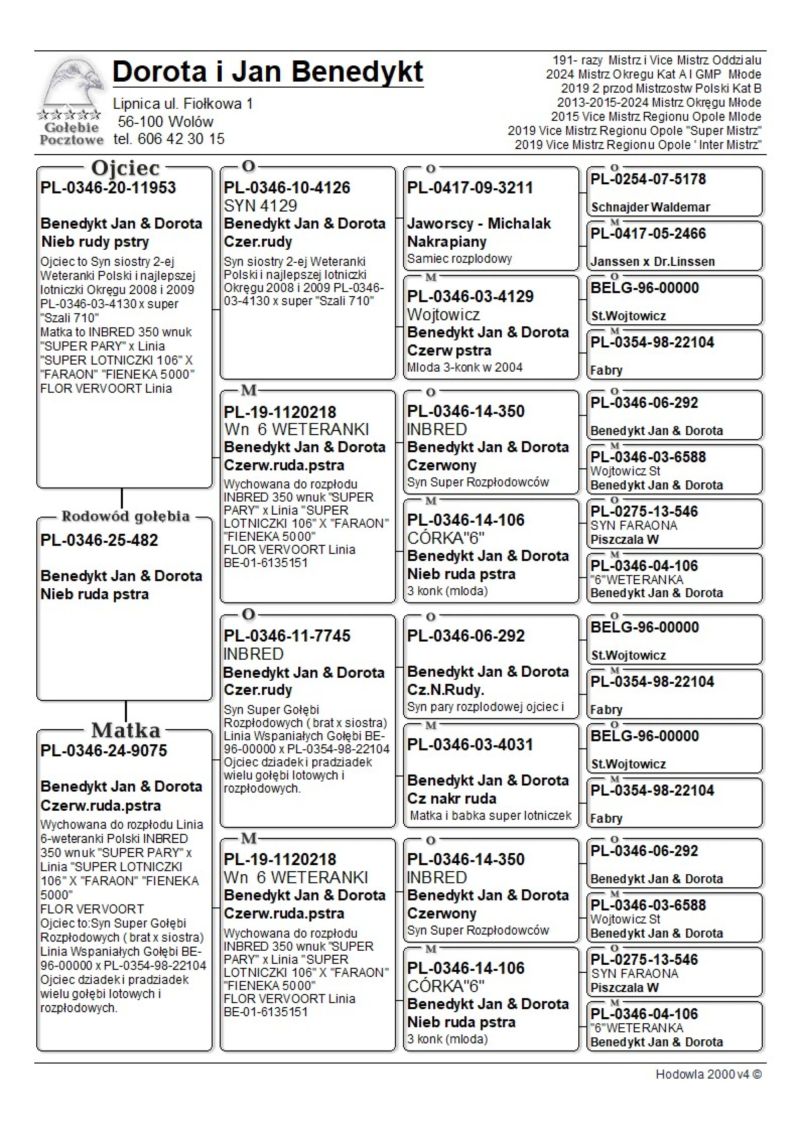 PL-0346-25-482 oryg. Benedykt Jan i Dorota 2024r. Mistrz Okręgu kat A i GMP Młode