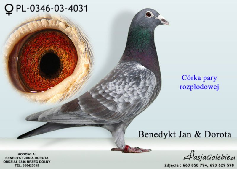 Gołąb z gołębnika Doroty i Jana Benedykt. Szczegóły pochodzenia w rodowodzie. Więcej informacji pod nr tel.: 606 423 015 i na stronie pasjagolebie.pl/?page_id=119
