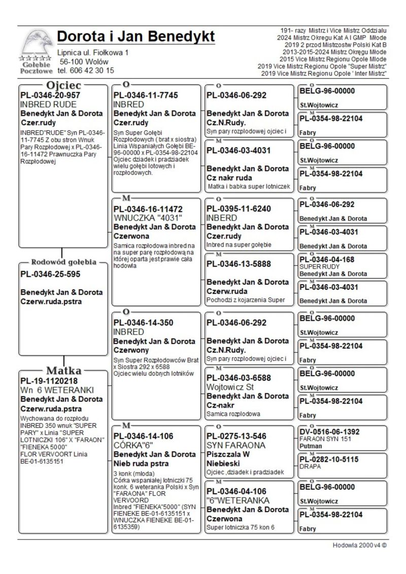 PL-0346-25-595 oryg. Benedykt Jan i Dorota 2024r. Mistrz Okręgu kat A i GMP Młode