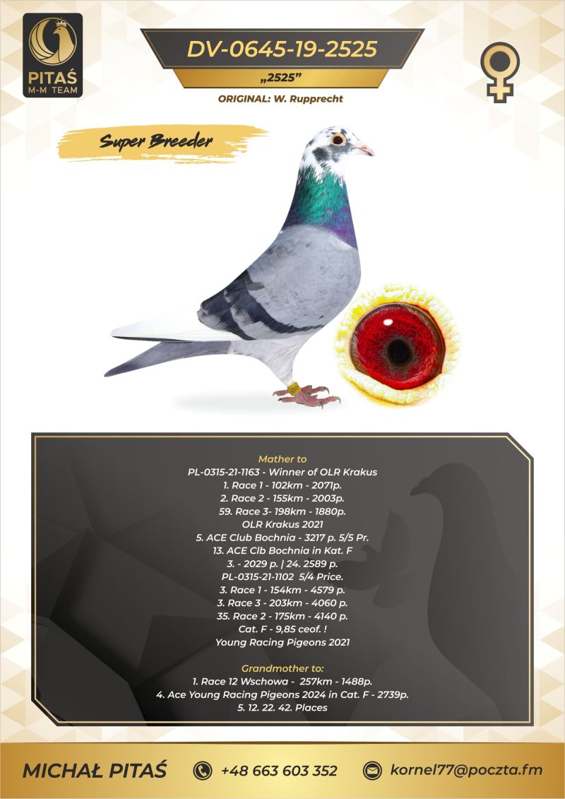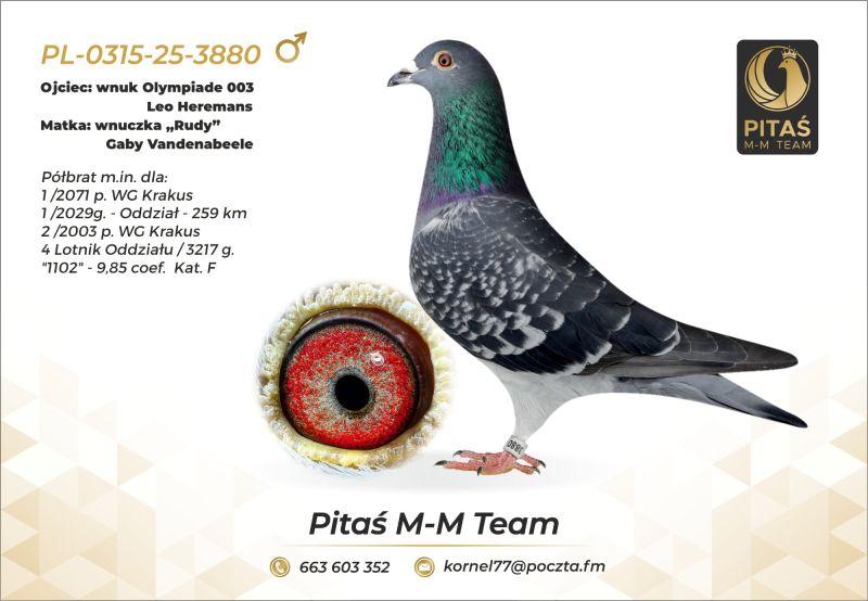 PL-0315-25-3880 - Pitaś M-M Team -Wnuk "Olympiade 003" L. Heremans x Wnuczka "Rudy" G. Vandenabeele, H.Bro. 1 i 2 Krakus