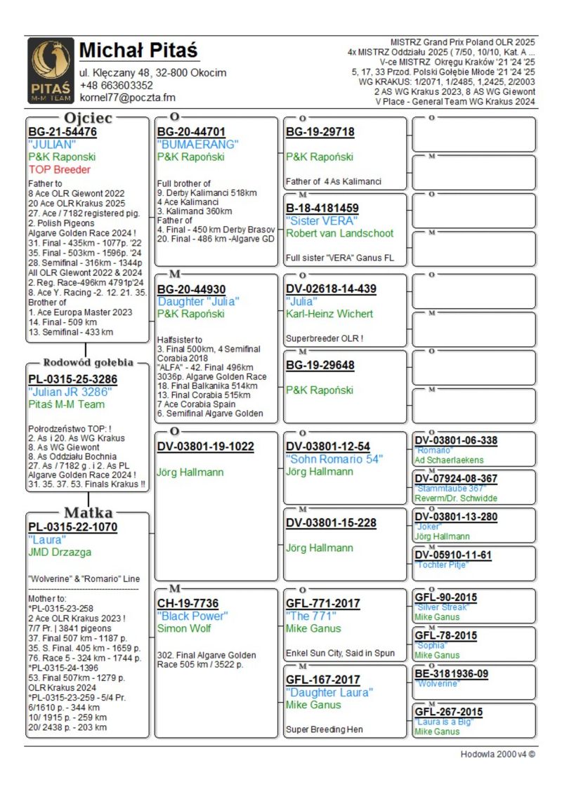 PL-0315-25-3286 - Pitaś M-M Team - TOP OLR ! Syn "Juliana" Raponski- Półbrat 2 As Wg Krakus, 8 As Giewont, 8 As Oddział