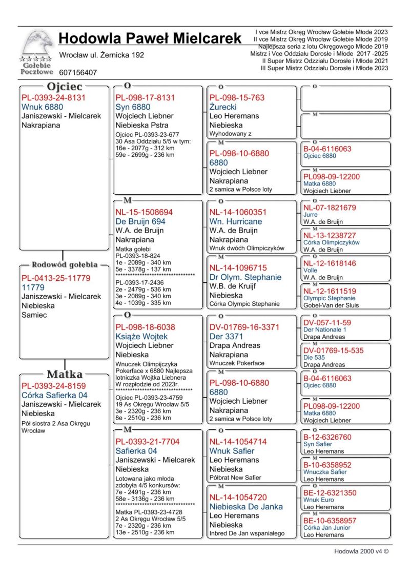 Nasza hodowla została oparta na gołębiach Leo Heremansa, Andreas Drapa, Gaby Vandanabeele, , Wa de Bruijne i przede wszystkim Wojciech Liebner (Gołębie z rodziny Braci Janssen)