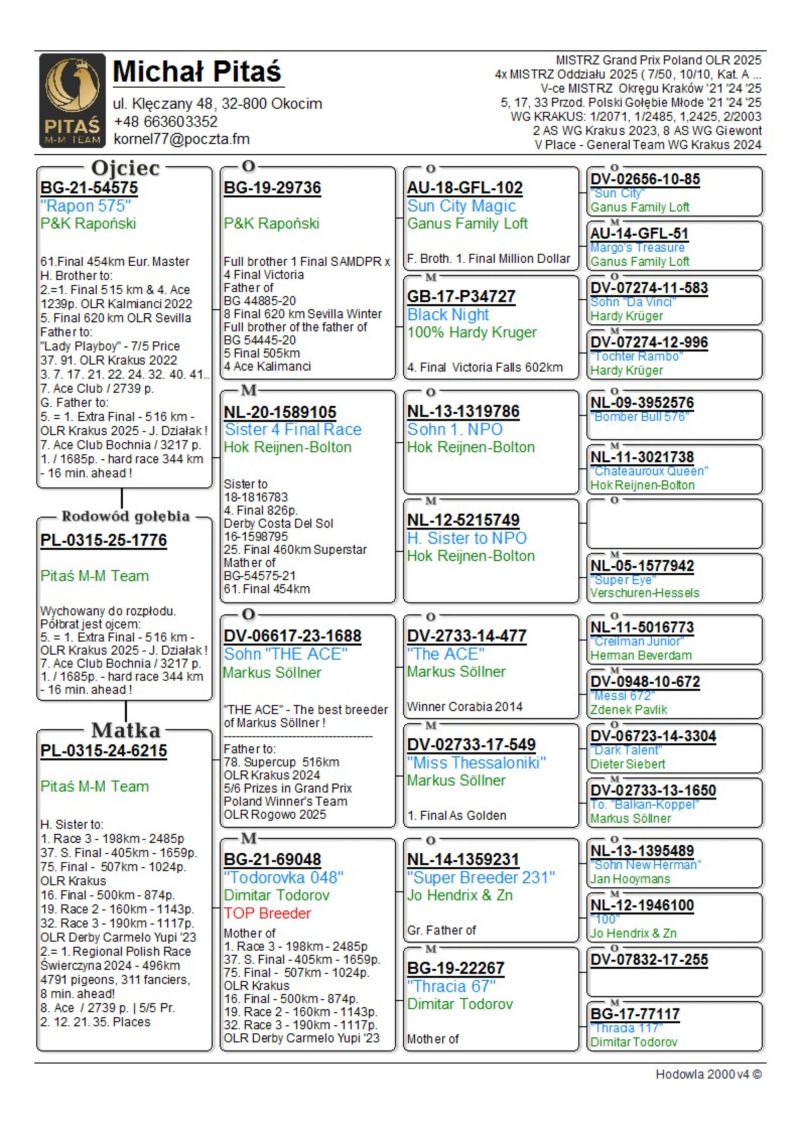 PL-0315-25-1776 - Pitaś M-M Team - 50% Raponski - Półbrat jest ojcem 5. Supercup i 16 As Long Dist. WG Krakus 2025