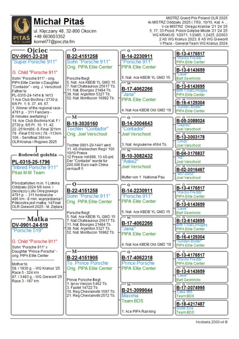PL-0315-25-1796 - Pitaś M-M Team -Inbred Porsche 911 -Wnuk Porsche 911 i Contador x wnuczka Porsche 911 i Prince Porsche