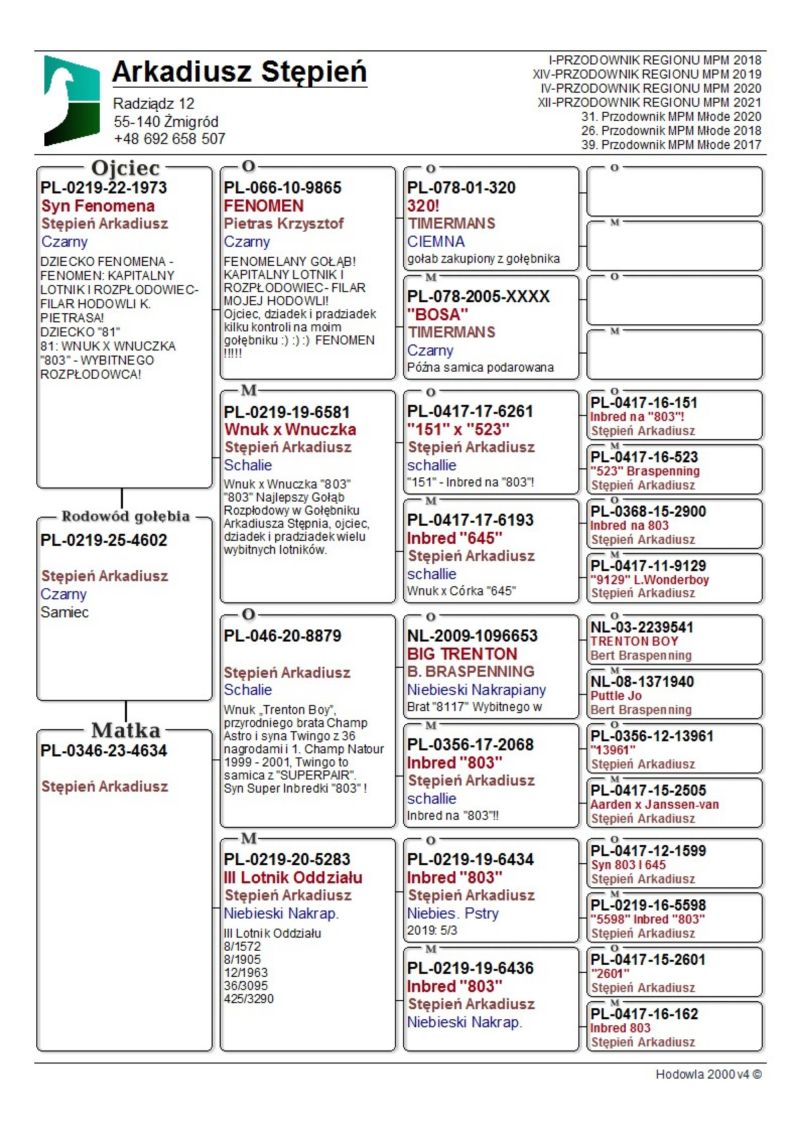 Oryginalny gołąb z hodowli Arka Stępnia. Szczegóły pochodzenia w rodowodzie. Odbiór osobisty lub na Wystawie Ogólnopolskiej. Proszę o kontakt telefoniczny w sprawie płci i dostawy przed zalicytowaniem. Więcej informacji pod nr tel.: +48 692 658 507