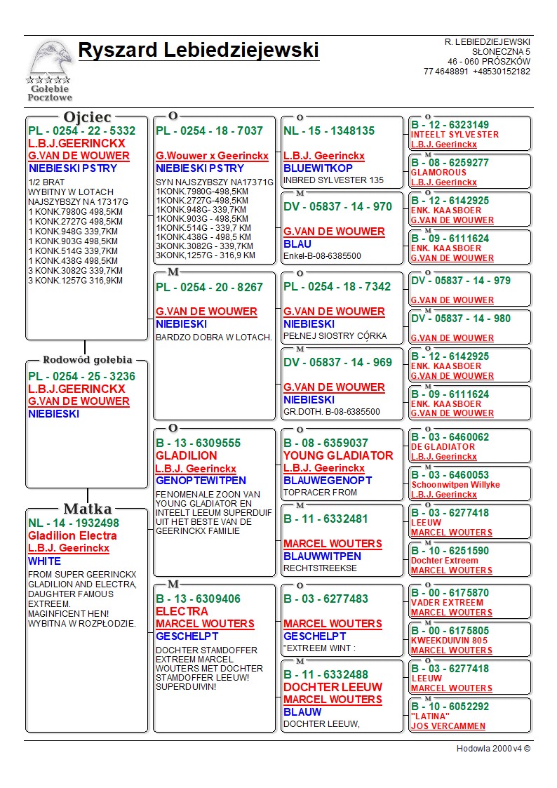 *prawdopodobnie samica* Oryginalny gołąb z hodowli Ryszard Lebiedziejewskiego. Szczegóły pochodzenia w rodowodzie. Więcej informacji pod nr tel.: 530 152 182. **Gołębie po kuracjach przygotowane do sezonu. **Transport gołębi prywatnym kurierem 100 zł do 3 szt. od 4szt do 6szt 150zł.