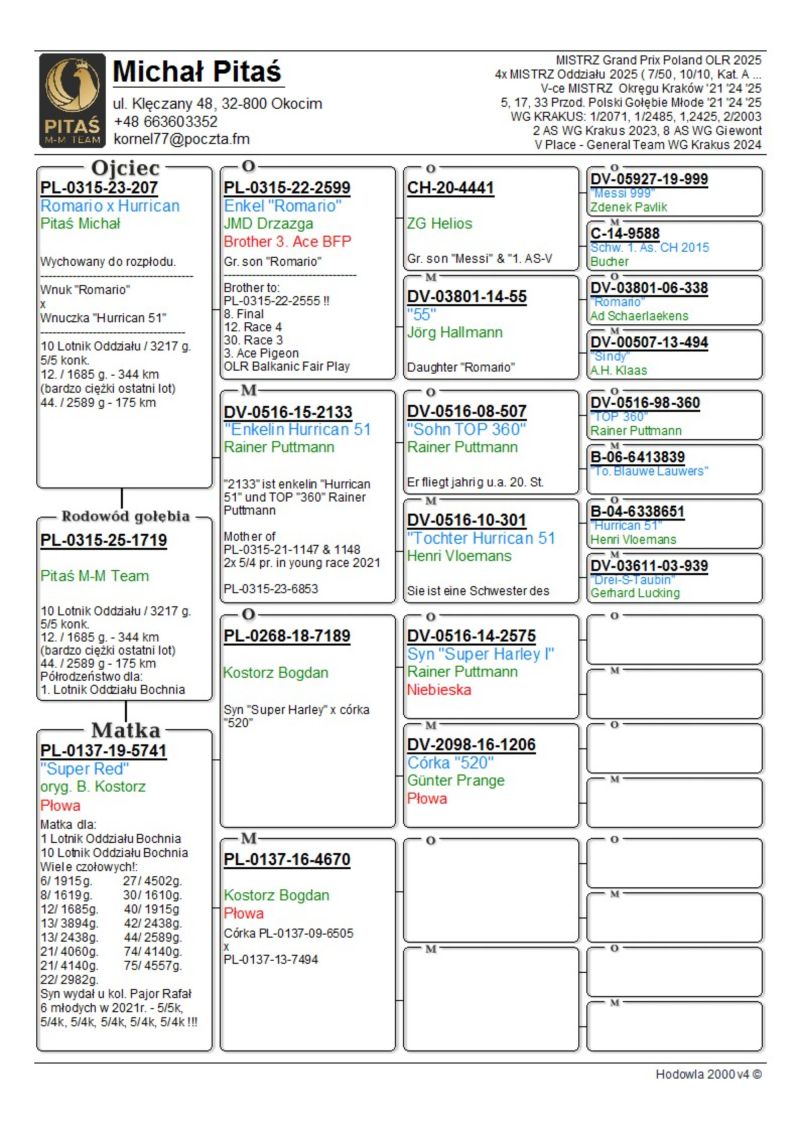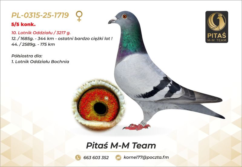 Na naszych aukcjach można znaleźć gołębie młode po pełnym programie lotowym z drużyny która zdobyła 4 Tytuły Mistrza Oddziału Bochnia 2025, II V-ce Mistrza Okręgu Kraków, 33 Przodownika Polski. Druga część aukcji to gołębie wychowane do rozpłodu, głównie z przeznaczeniem pod Wspólne Gołębniki, pochodzą z naszych najlepszych gołębi rozpłodowych, dzięki którym zdobyliśmy w tym roku tytuł Mistrza Grand Prix Poland Wspólnych Gołębników. W razie pytań proszę o kontakt pod nr tel. 663603352. Możliwa wysyłka (160 zł - paczka do 3 gołębi) lub odbiór na targach w Katowicach.