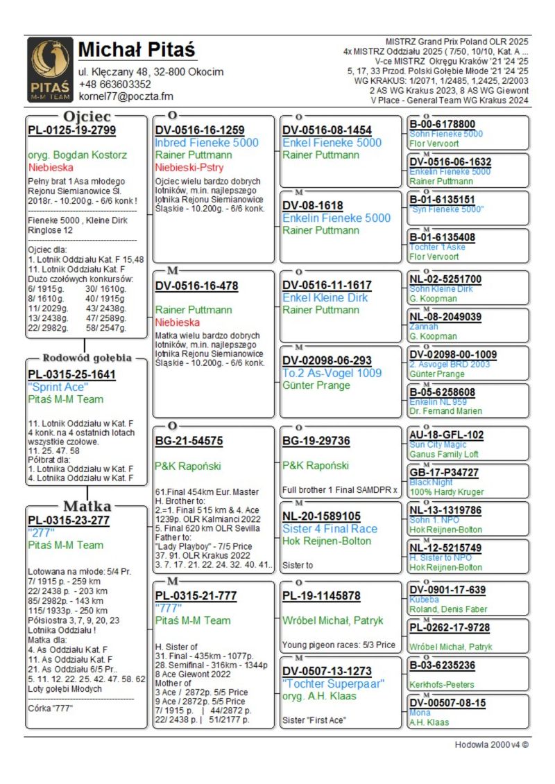 PL-0315-25-1641 - Pitaś M-M Team - 5/4 konk. - 11 Lotnik Oddziału w Kat F. - wszystkie czołowe konk. Półbrat 1 i 4 As