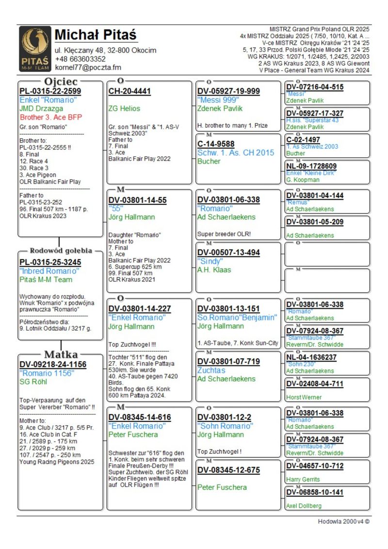 PL-0315-25-3245 - Pitaś M-M Team - Inbred "Romario" J. Hallmann , Wnuk "Romario" x podwójna prawnuczka "Romario"